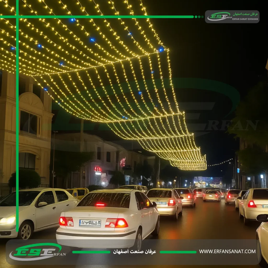 نصب ریسه ها روی درختان یا ستون های خیابان های اصلی، حس جشن را به شهروندان منتقل می کند. این تجهیزات با مصرف کم انرژی، برای پروژه های موقت و دائمی مناسب اند. در روندهای جهانی، ریسه های LED با قابلیت کنترل هوشمند برای ایجاد الگوهای نورپردازی پویا استفاده می شوند. عرفان صنعت این ریسه ها را برای نورپردازی خیابان ها و میدان ها به کار می گیرد که نتیجه مثبتی در افزایش روحیه شهروندان داشته است.