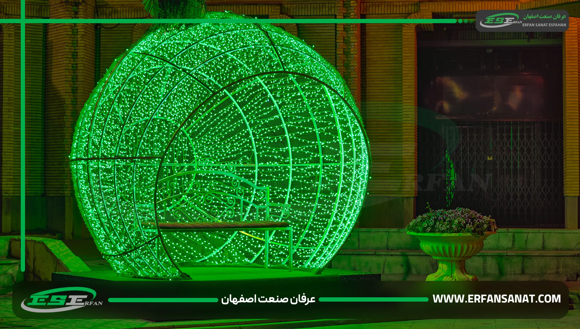 إن تقوس أنابيب 22 المعدنية لبناء هذا القسم تُظهر الدقة والمهارة في عملية الإنتاج. تم إجراء هذه التقوس بطريقة تجعل الشكل الكروي للكرة متساويًا وجميلًا تمامًا. لا تُضيف طلاء هذا القسم إلى جماله فحسب، بل تعزز أيضًا مقاومته لظروف الطقس مثل الرطوبة، والمطر، والرطوبة. تضيف الكرة مع الإضاءة التفاعلية لمسة مذهلة للمساحة ويمكن أن تعمل كعنصر بصري جذاب في أي بيئة.