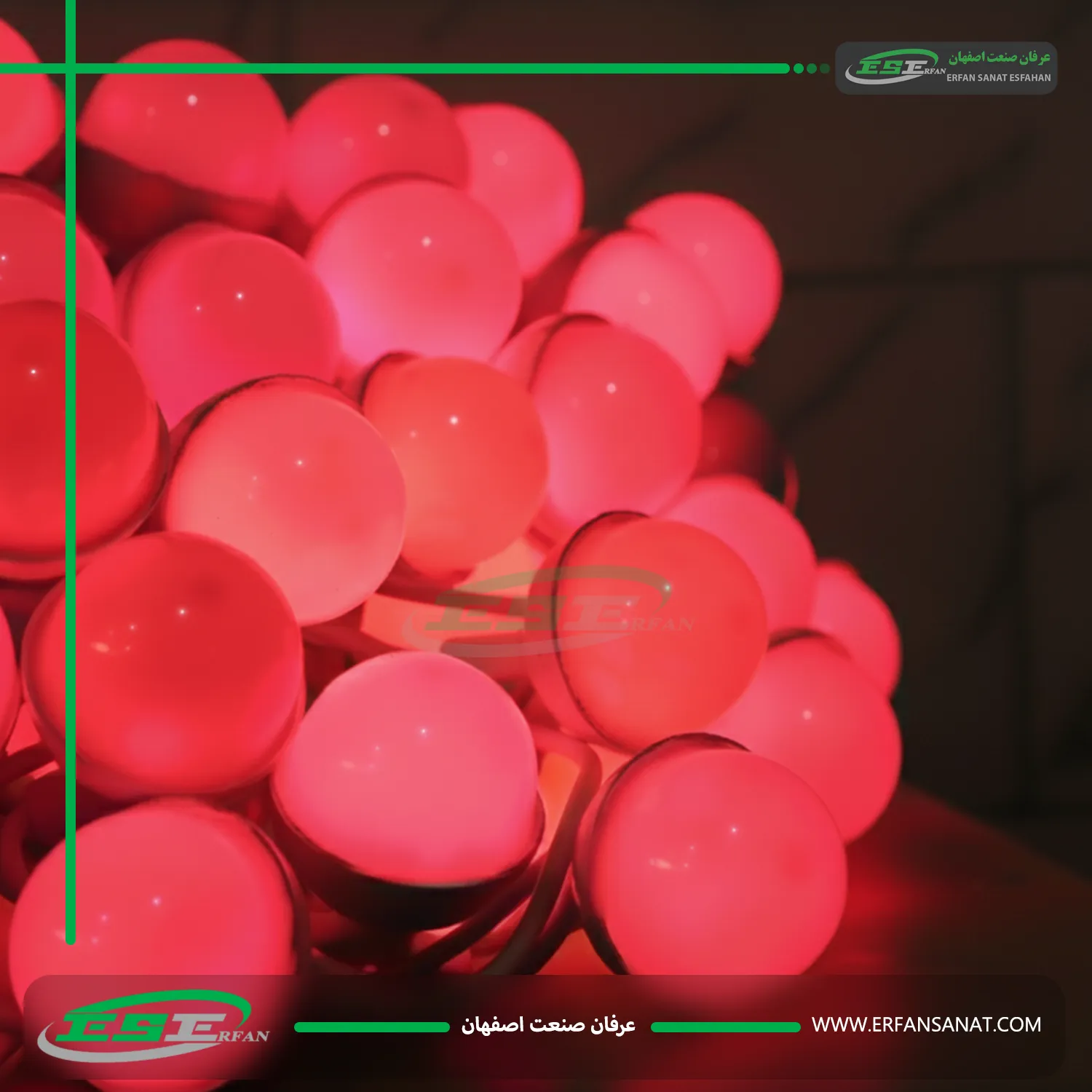The Single-Color Hazelnut-Shaped String Light and the Full-Color Hazelnut-Shaped String Light are both advanced products from Erfan Sanat Isfahan company, but they have different features and applications, and choosing either one can have its own specific advantages depending on the project’s needs.