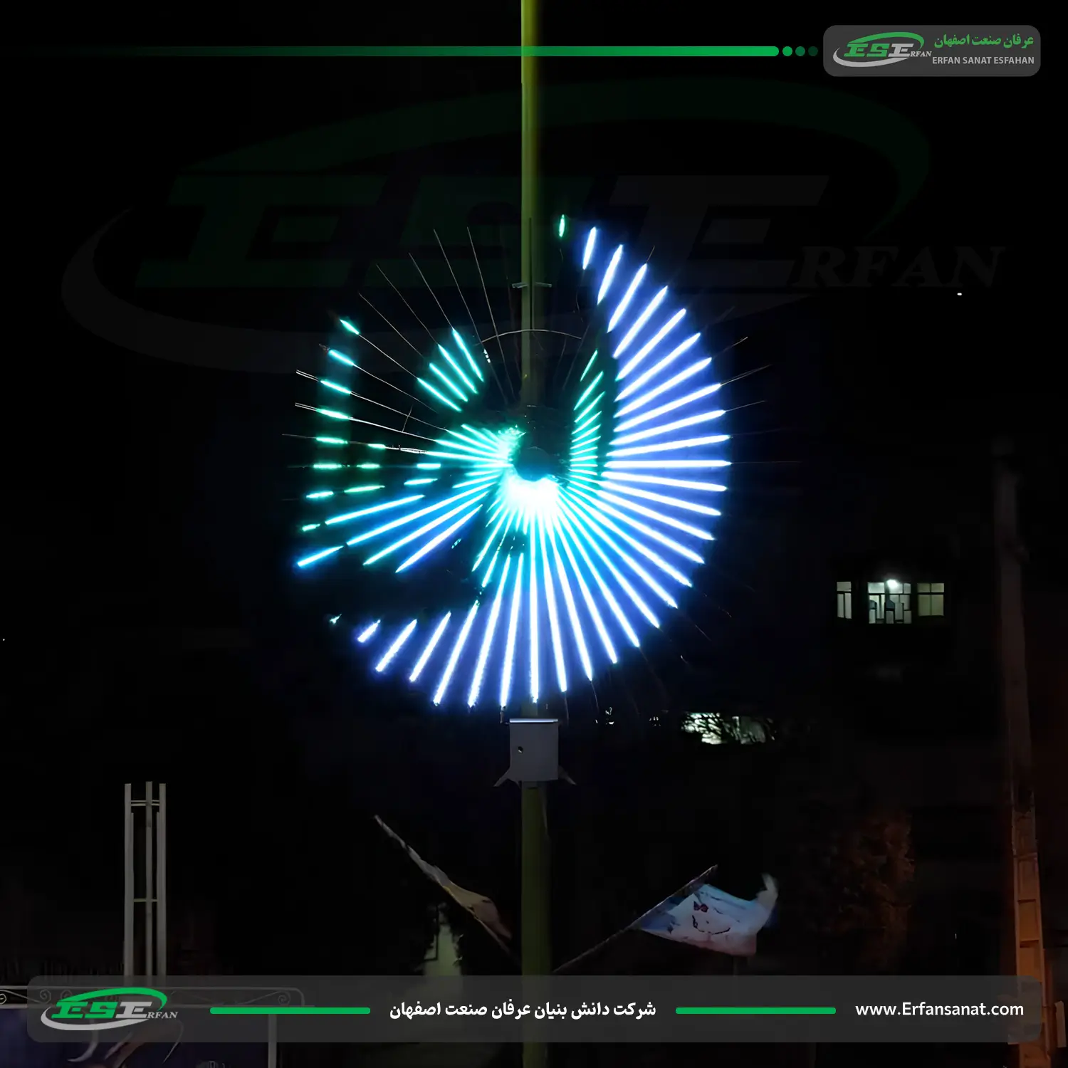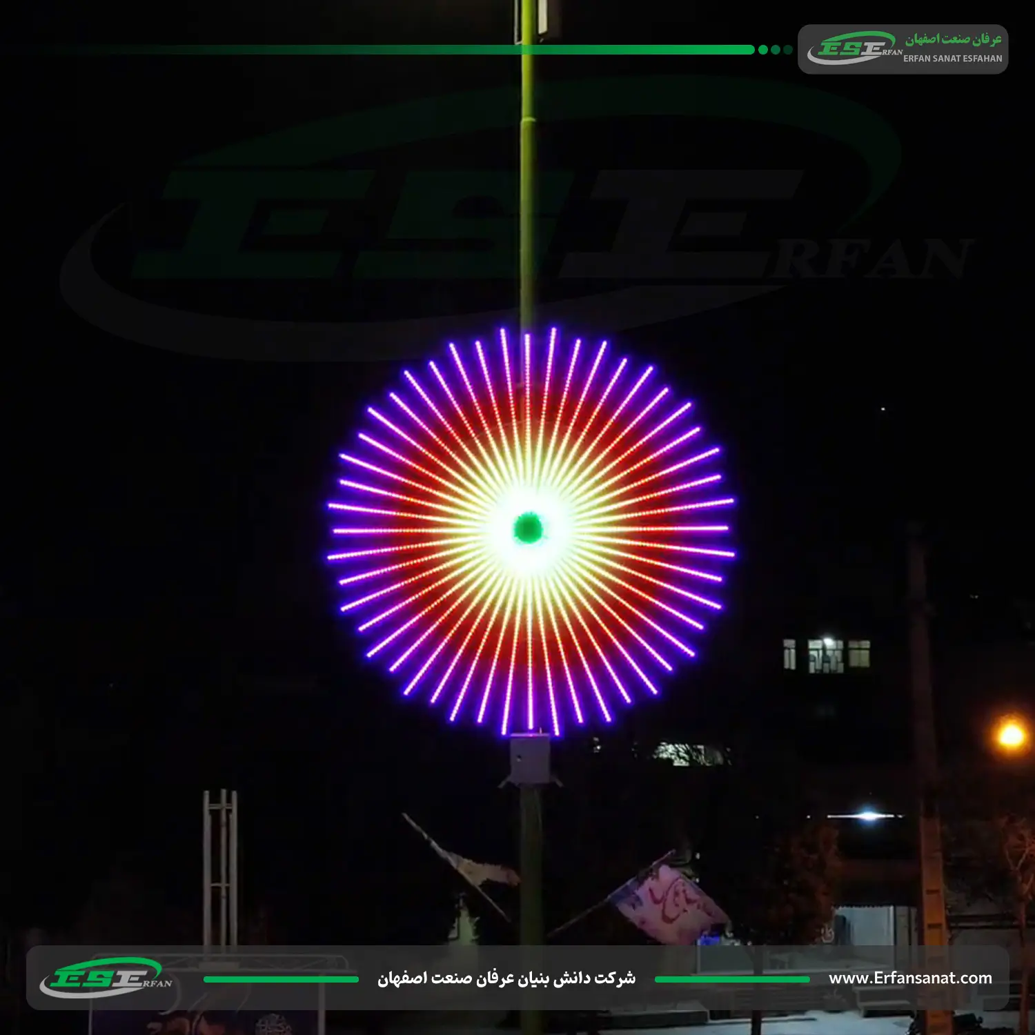 خرید خورشید نما ۴۸ پره با بیش از 2300 عدد پیکسل نورانیLED از برند Epistar، کنترل هوشمند WiFi و NRF، و استاندارد حفاظتی IP68، بهترین انتخاب برای پروژههای شهری، میادین اصلی، ورودی شهرها و فضاهای فرهنگی-گردشگری است.
